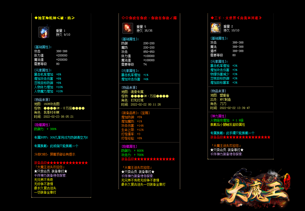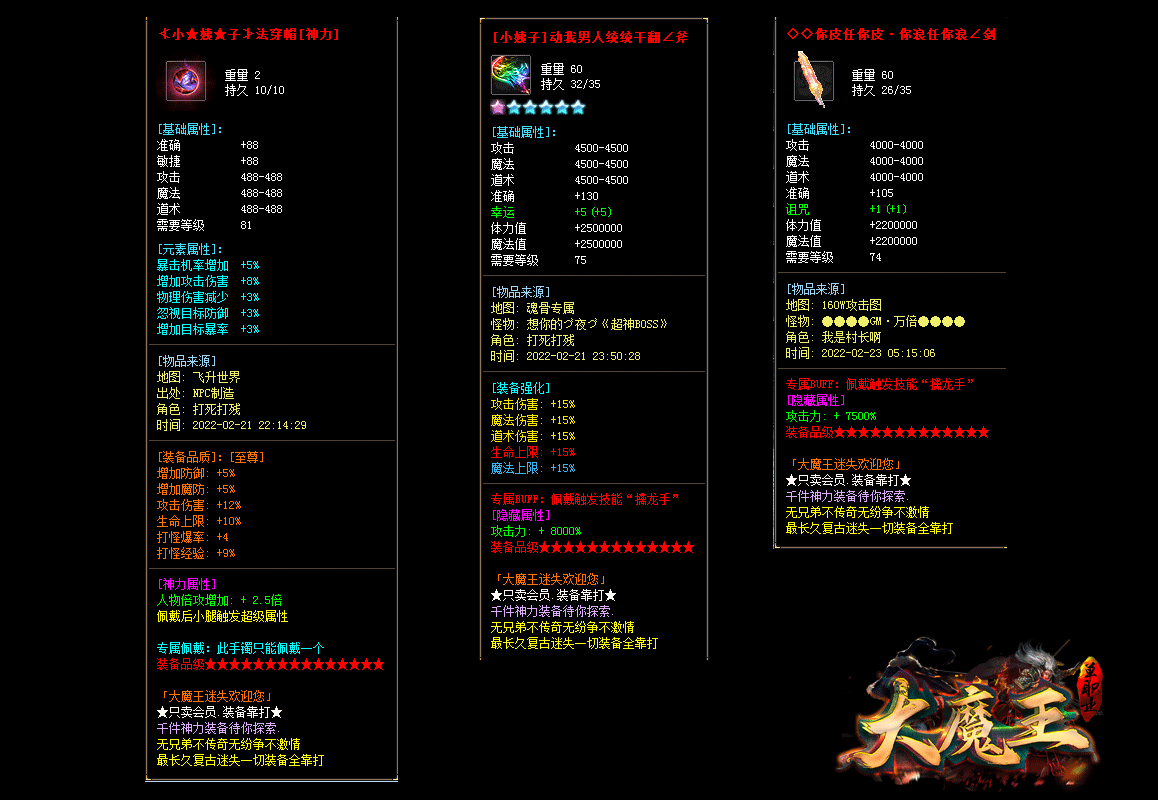 至尊会员(50元) 拥有:1.2倍攻击 1.5倍爆率 20护盾 恶魔审判等 详情游戏内查询