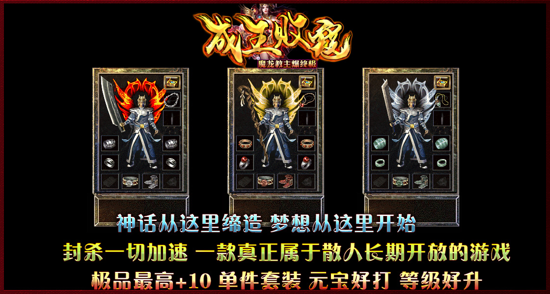 装备层次:圣战 → 雷霆 → 战神 → 狂雷 → 火魔终极 → [ 魔龙教主爆终极火魔剑甲 ]!!!