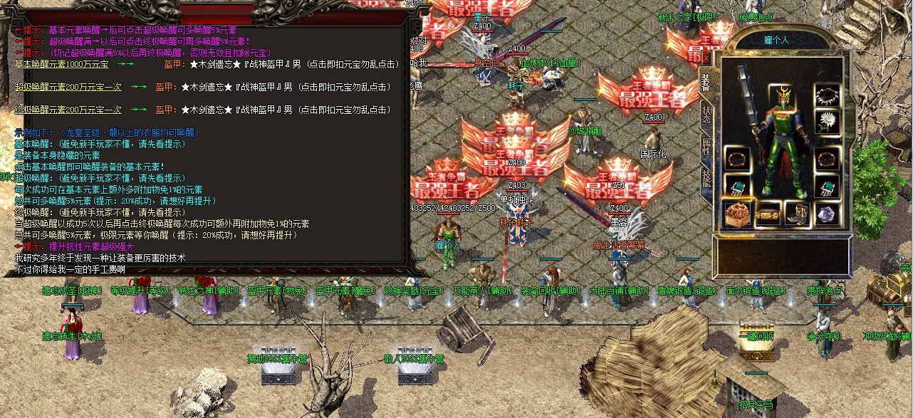 前期很多地图都有世界BOSS,不管你是散人还是充值玩家,前期世界BOSS一样要抢抢抢