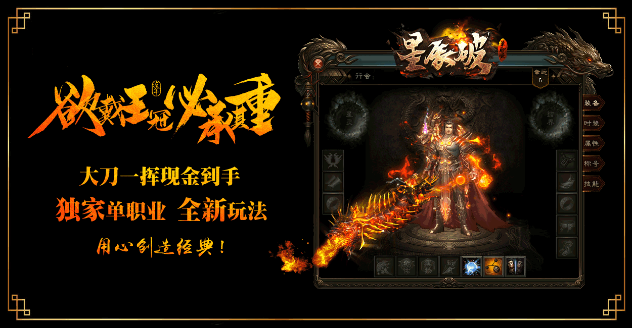 本游戏由 《星辰破》 独家运营 All rights reserved. 版权所有 用心缔造一个经典单职业传奇!