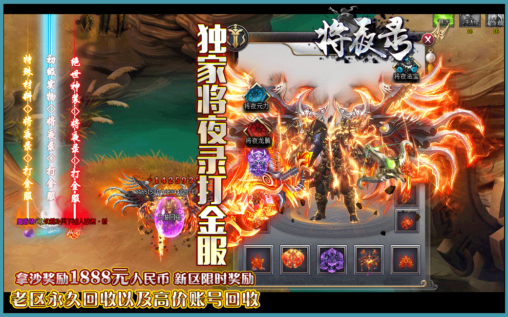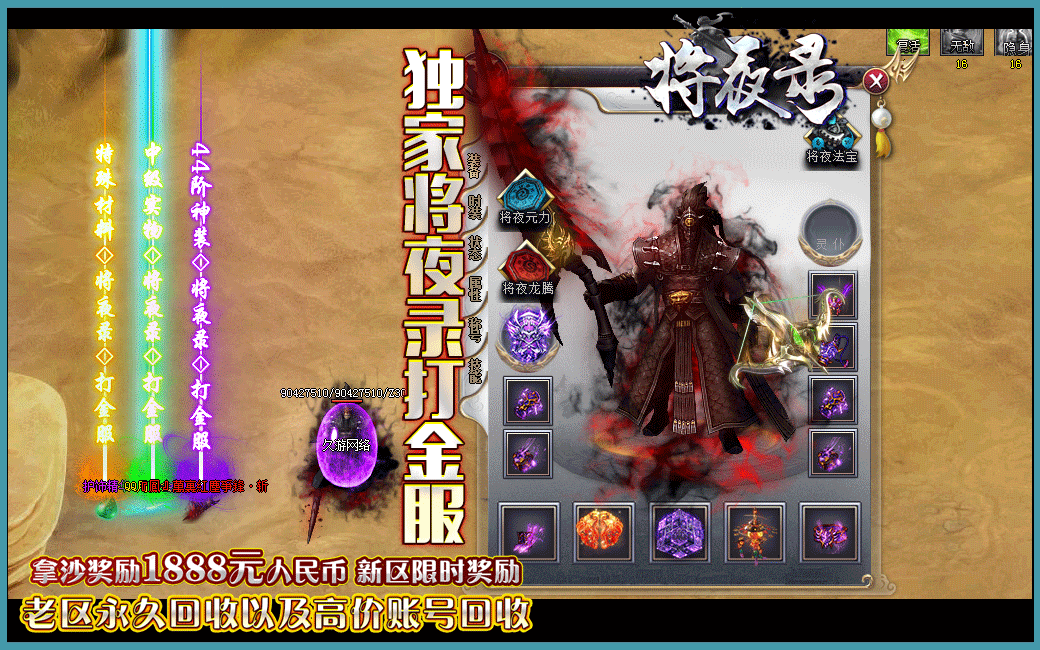 -【游戏公告】元宝1:10000,将夜币1:100,RMB点比例1:1无赠送