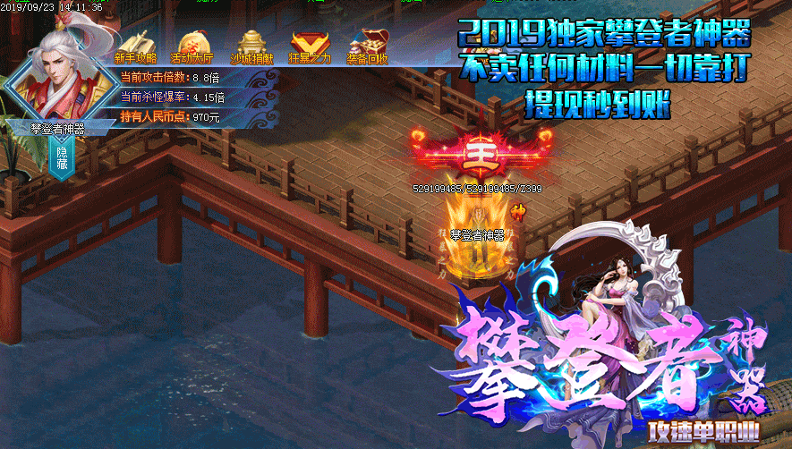 2.然后金币商人处50Rmb点兑换1000金币领取赞助礼包.立即获得秒怪buff属性+50%杀怪爆率等大量奖励和特权 (前期想节省的玩家可以直接打金币领回馈)