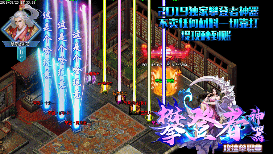 3.在金币商人处购100Rmb点买终极大礼包!拥有大量起步物品 还有200%爆率 切割值倍数3倍!顶级秒怪BUFF 打怪超快!