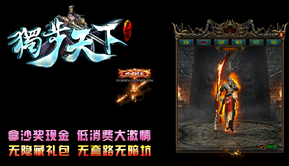 不卖装备,不卖元宝,所有怪物出终极,看脸时代,血量越高的怪物爆率越高!