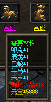 终极需求材料:元宝、上古炽金、荣誉、声望、玛法水晶