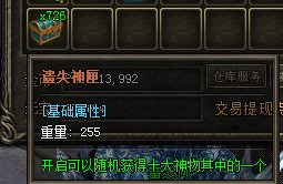 自动挂机、在线回收、远程仓库、人物包裹增加40格,包裹负重增加500点