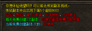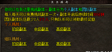 初级副本:45级进入,进入条件10个天元石,刷新怪物为传奇经典boss