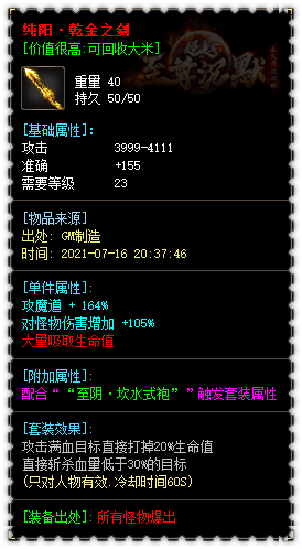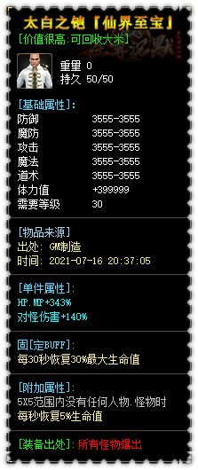 【版本介绍】: 永久回收装备好爆 装备全部真实爆出 小怪掉落终极