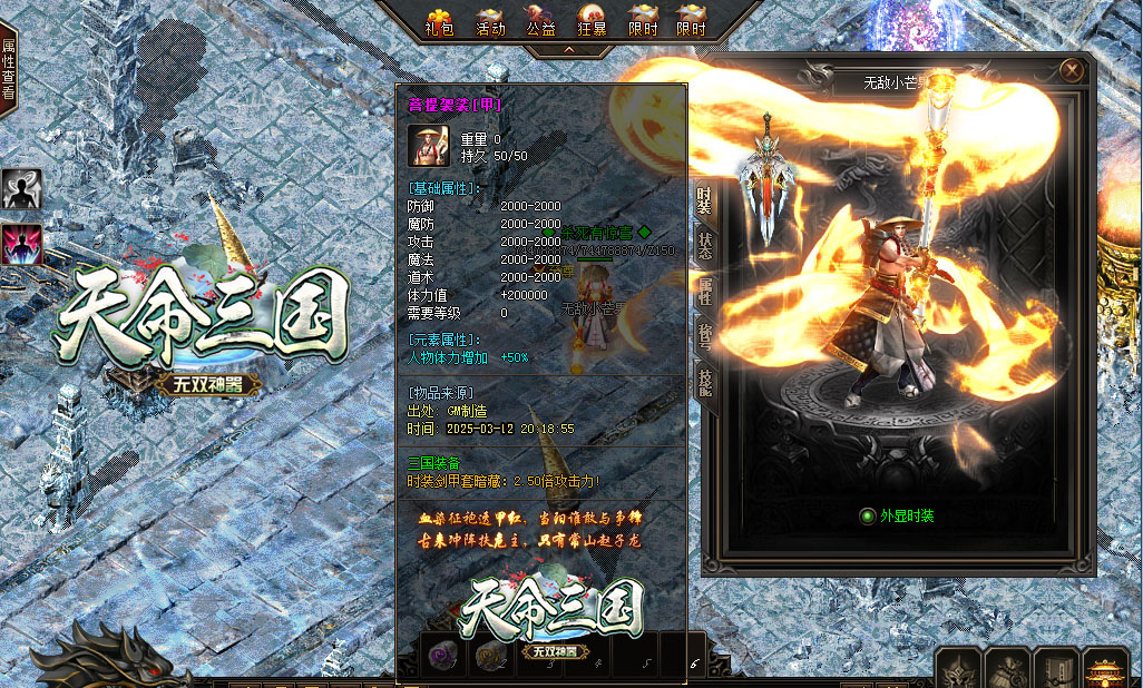 【更新介绍】:增加一套超级时装,属性超牛逼,可直接怪物爆出也可直接合成!