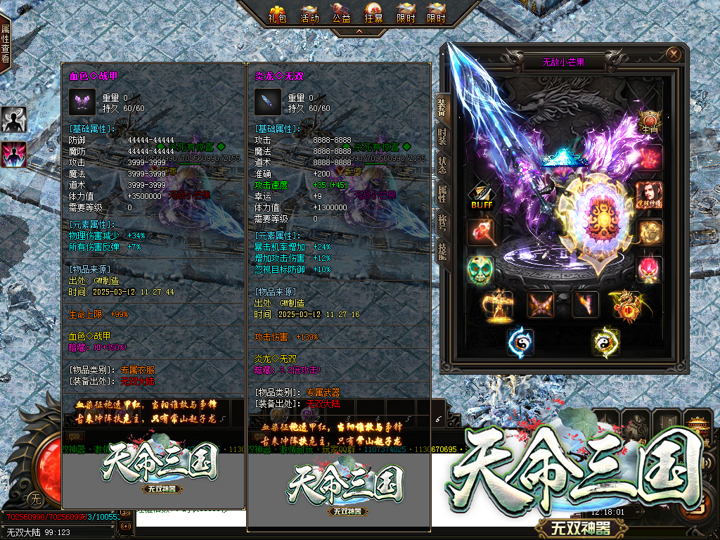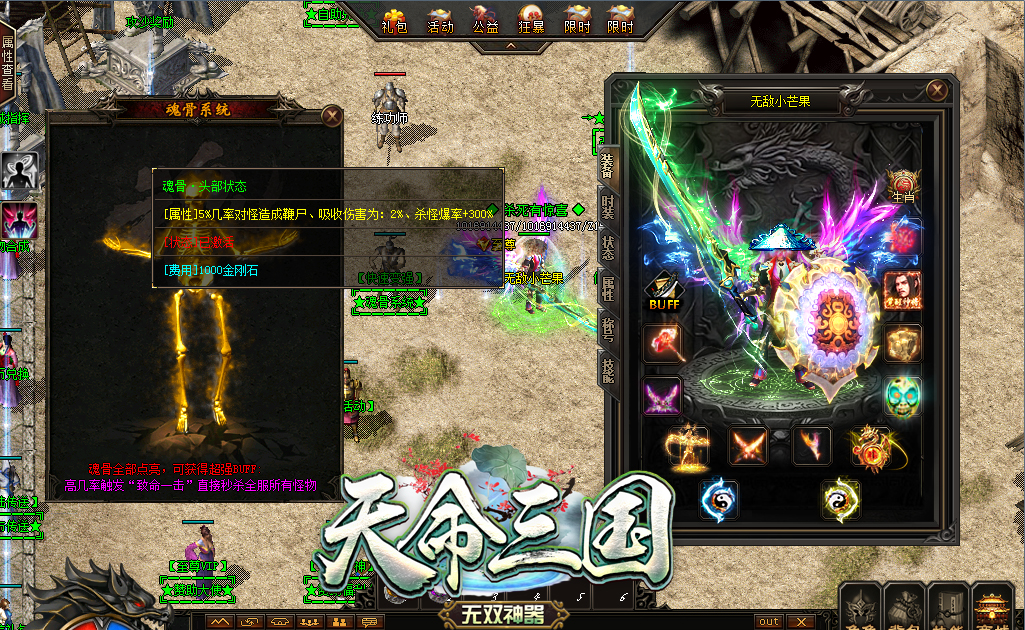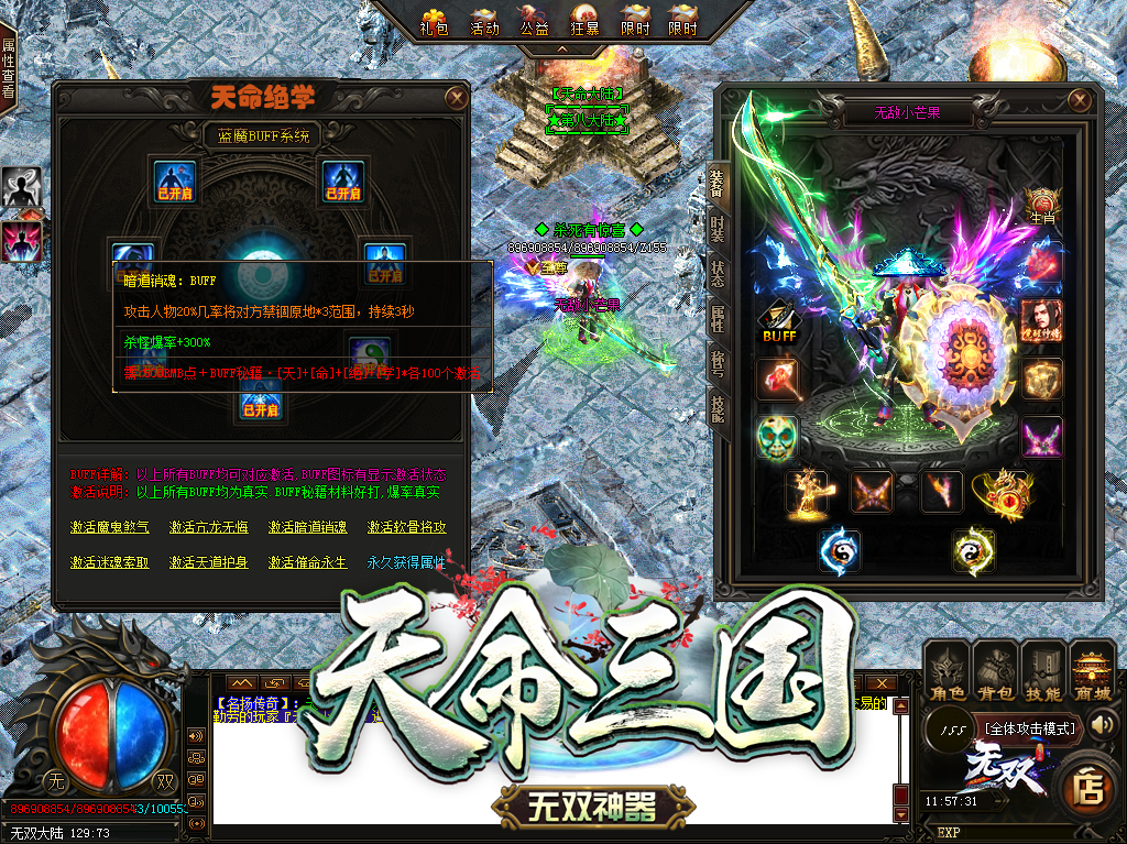 【更新介绍】:新增(天命绝学)BUFF系统,绝学激活材料,三国人物怪物均有掉落,爆率高!