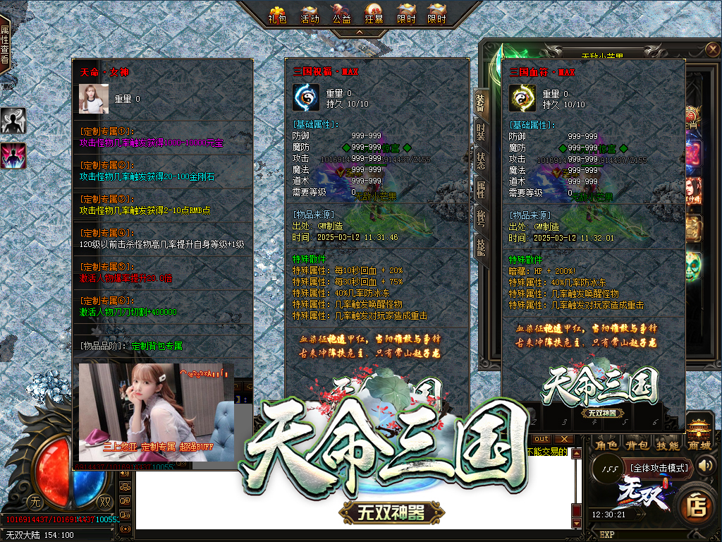 【更新介绍】:更新背包专属“天命·女神”拥有超多牛逼BUFF,一个女神玩遍本服...