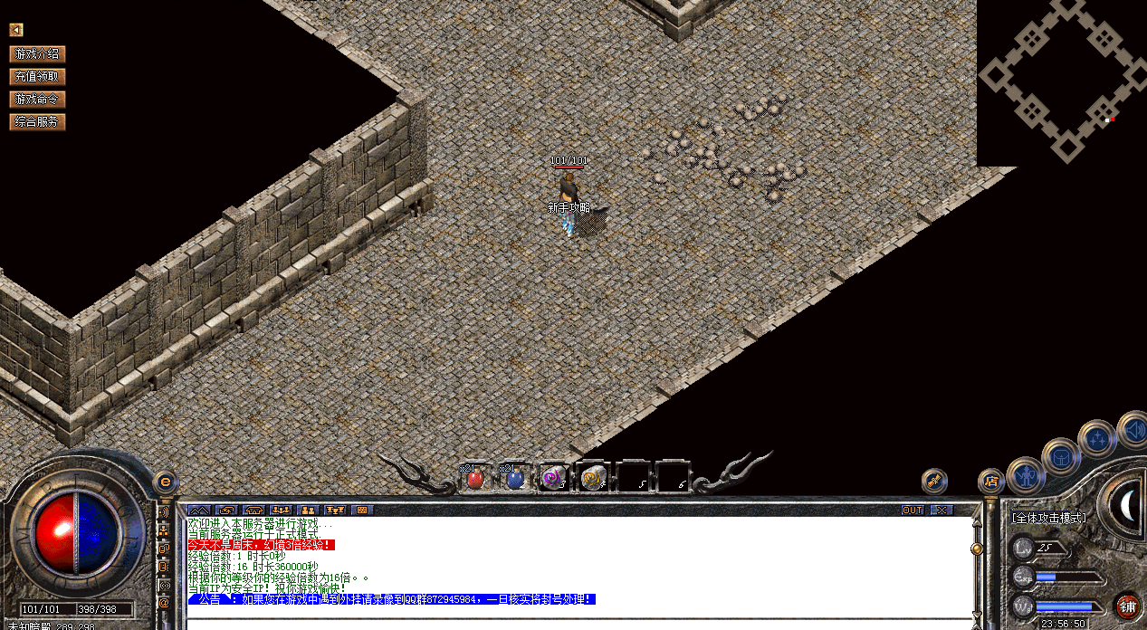 设置完成之后,点击npc,会将玩家传送至新手村,在新手村安全区外,有一个名叫新手练级的NPC,点击进入,能快速升级