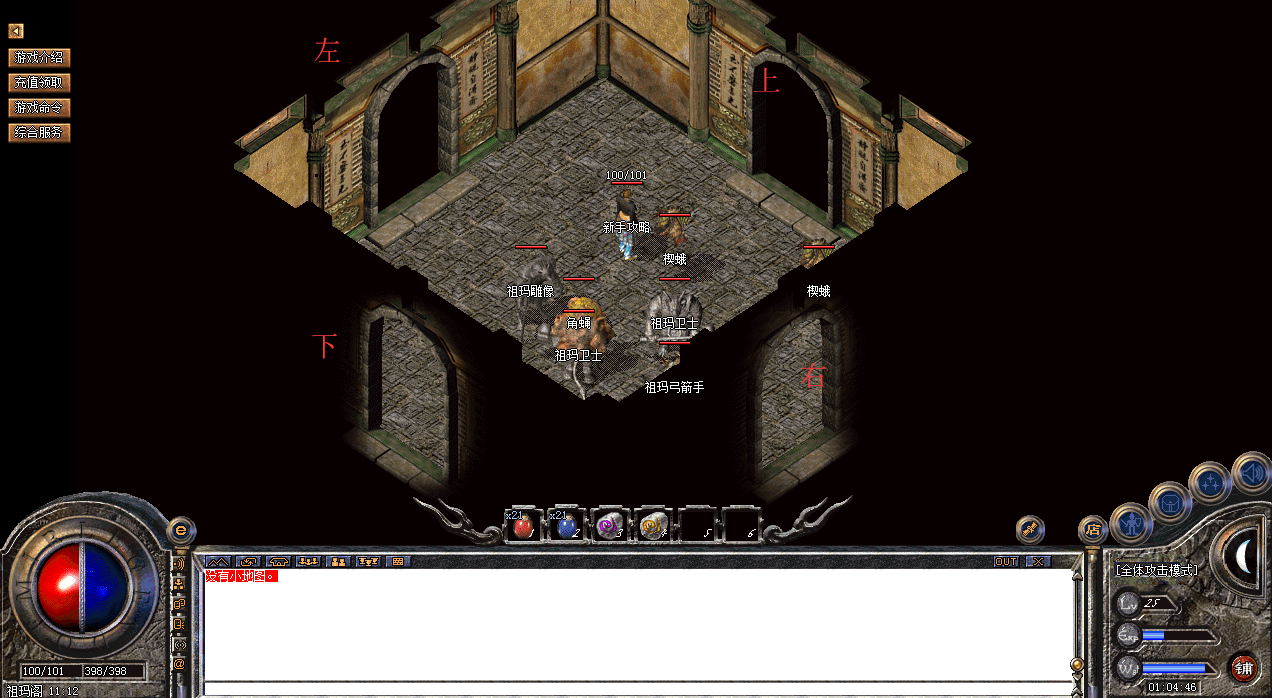 然后玩家在盟重安全区的又上角找到《新手圣地》NPC,免费传送至新手圣地,击杀尸王获取高级技能书或者药,里面也能爆出沃玛装备,地图共分为三层